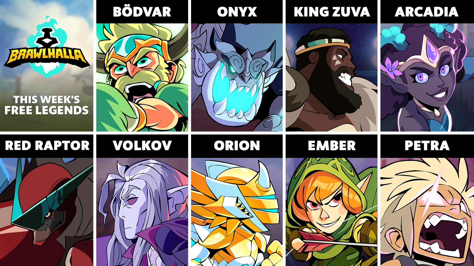 The free-to-play Legend rotation for this week features: Bödvar, Onyx, King Zuva, Arcadia, Red Raptor, Volkov, Orion, Ember, and Petra.