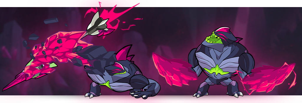 Legend 68, Rupture, wielding Katars & Rocket Lance, erupts into battle with the power of Darkheart! His 3 launch Skins hit the Mallhalla alongside the ‘Ruptoodle’ Avatar.